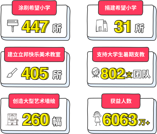 截止2022年,立邦「為愛上色」中國大學生農村支教獎累計支持全國187所高校,602支大學生團隊,完成14,345余天公益事件,影響人數近3,410萬人。